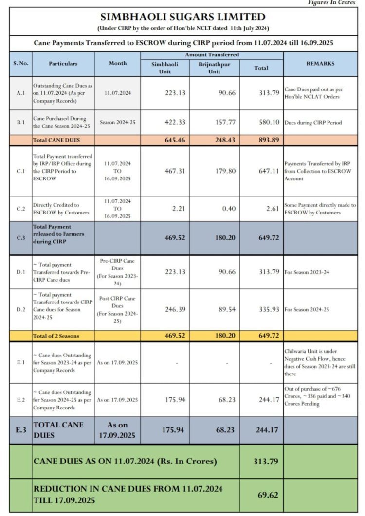- 11 जुलाई 2024 से CIRP के नियंत्रण में सिंभावली शुगर मिल का हो रहा संचालन, प्रत्येक माह में हर हफ्ते गन्ना किसानों के लिए किया जा रहा करोड़ों का भुगतान